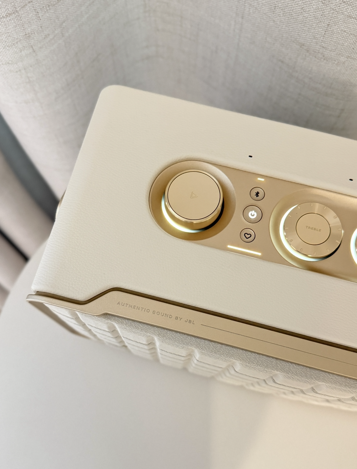 스피커의 측면에는 "AUTHENTIC SOUND BY JBL"이라는 각인이 있어, 브랜드의 자부심을 느낄 수 있답니다.